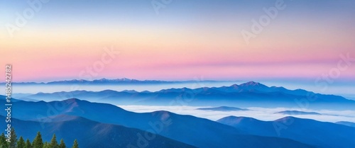 © Thanakon, Fototapeta premium Tranquil Mountain Vista at Sunrise