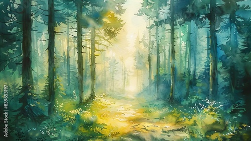 Fototapeta premium Tranquil nature landscapes for inner peace, Serene forest with soft sunlight...