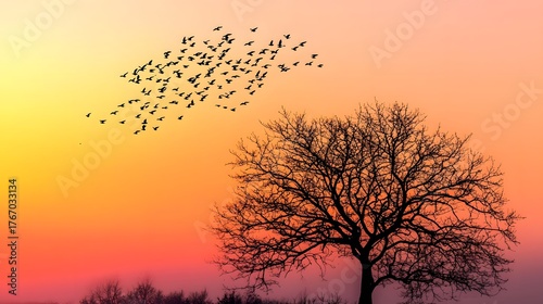© Sajib, Naklejka premium Tranquil nature scene with tree silhouettes high resolution picture