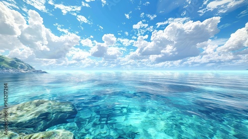 © Lasvu, Fototapeta premium Tranquil Ocean and Azure Sky Setting.