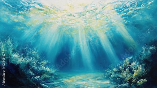Fototapeta premium Tranquil ocean depths with gentle sunlight penetrating the water, creating a...