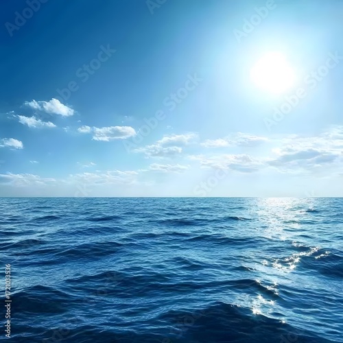 Fototapeta premium Tranquil ocean horizon under bright sunlit sky with scattered clouds