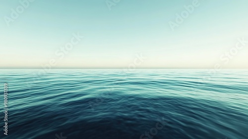 Obraz premium Tranquil ocean horizon with gentle waves under a clear blue sky at sunrise