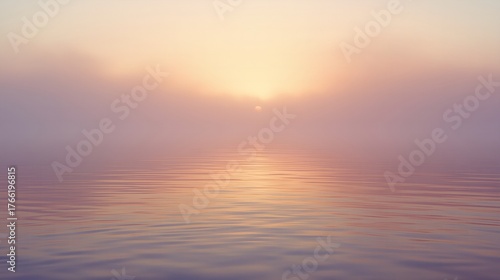 © Artàn Test , Obraz premium Tranquil Ocean Horizon with Soft Light and Fog – Serene Coastal Sunset
