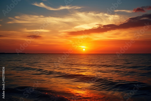 Obraz premium Tranquil Ocean Sunset: Captivating Evening Sky