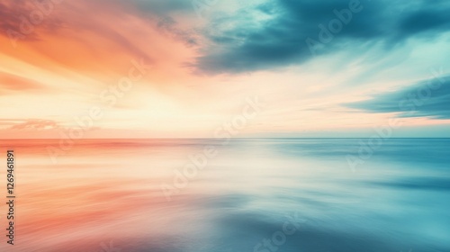 © AlfaSmart, Fototapeta premium Tranquil ocean sunset with vibrant sky and smooth waves