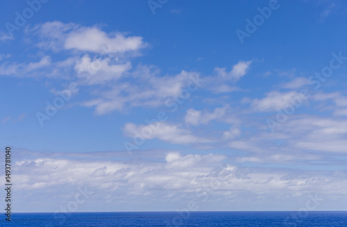 © edb3_16, Obraz premium Tranquil Ocean View Under a Clear Sky With Cloud Formations