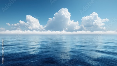© BlackBird Studio, Obraz premium Tranquil Ocean View with Blue Skies and Fluffy Clouds - Serene Seascape