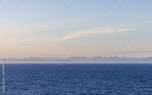 © edb3_16, Obraz premium Tranquil Ocean View with Distant Mountains Under Clear Sky