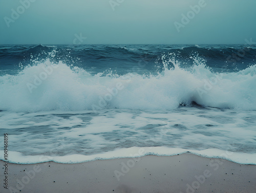 Fototapeta premium Tranquil Ocean Waves Crashing on Scenic Tropical Beach