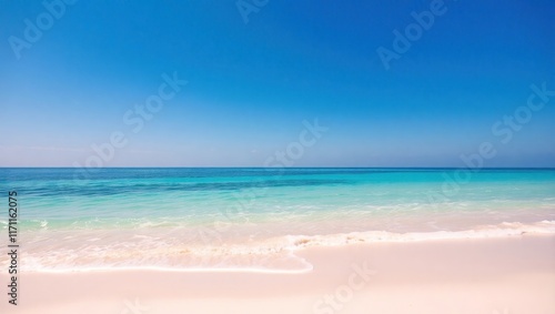© Jarvis, Fototapeta premium Tranquil Ocean Waves Lap Gentle Pink Sandy Beach