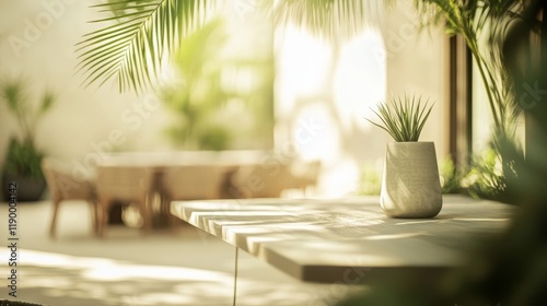Obraz premium Tranquil Outdoor Dining Area Surrounded by Soft Greenery