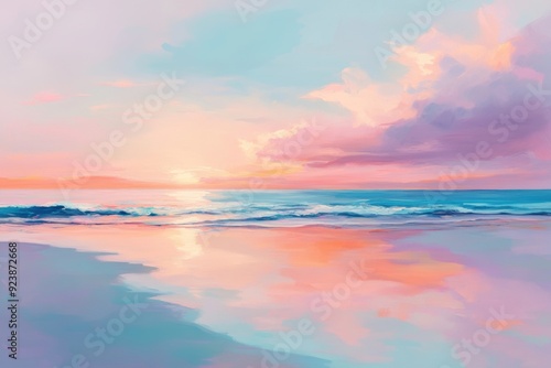 Fototapeta premium Tranquil pastel sunset serene beach landscape