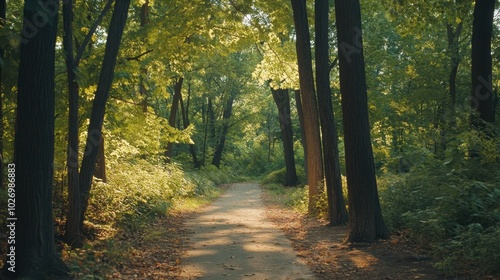 Obraz premium Tranquil Pathway Through Beautiful Green Forest