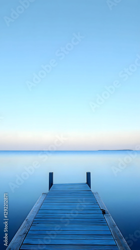 © Andsx, Obraz premium Tranquil Pier Extending into Serene Blue Waters