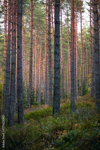 Obraz premium Tranquil Pine Forest in Autumn Light