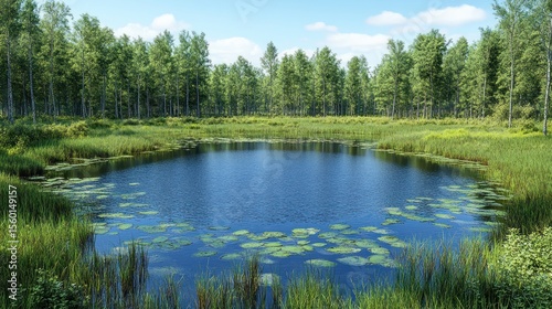 © ROY, Obraz premium Tranquil pond in a lush forest