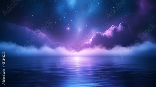 Naklejka premium Tranquil purple sky reflecting on calm ocean surface