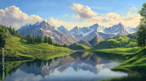 Fototapeta premium "Tranquil Reflections: A Peaceful Mountain Landscape"