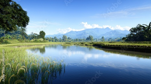 © Hestutiningsih, Fototapeta premium Tranquil River Landscape