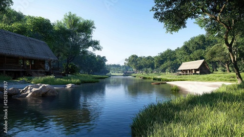 © Sigit, Obraz premium Tranquil River Village