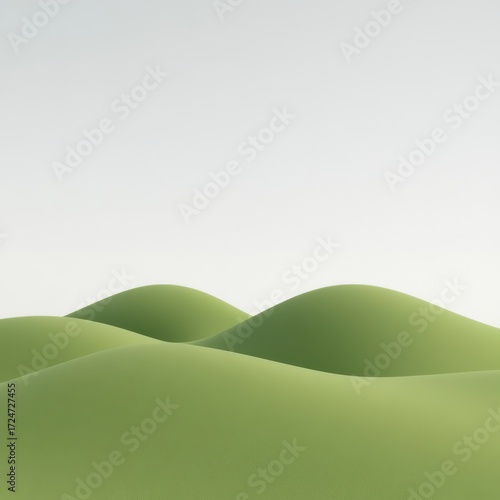 © Kantita, Obraz premium Tranquil Rolling Green Hills under Soft Light with Gradual Sky