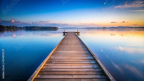 Naklejka premium Tranquil scene of a pier stretching out into a serene lake