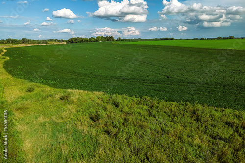 Fototapeta premium Tranquil scene overlooking summertime farm fields