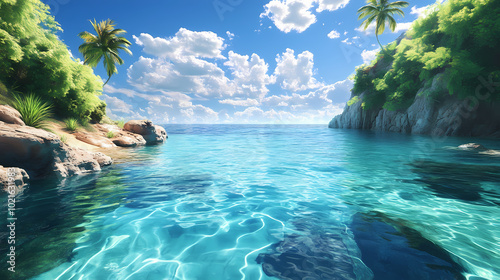 Fototapeta premium Tranquil sea lagoon picture. Crystal-Clear Lagoon. Illustration