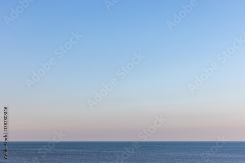 © evannovostro, Obraz premium Tranquil seascape with a still blue sea stretching into the horizon