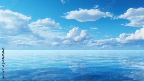 Fototapeta premium Tranquil Seascape with Blue Sky and Scattered Clouds, Conveying Peaceful...