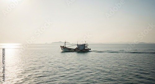 Fototapeta premium Tranquil Seascape with Fishing Boat at Dawn.