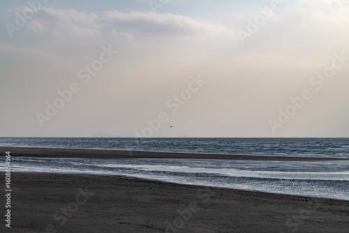 © 안구정화, Fototapeta premium tranquil seascape with sunbeams and flying seagull