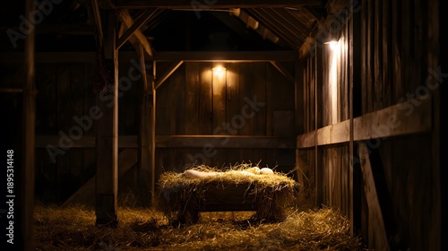 Fototapeta premium Tranquil stable scene radiates warmth peaceful Christmas nativity evokes...