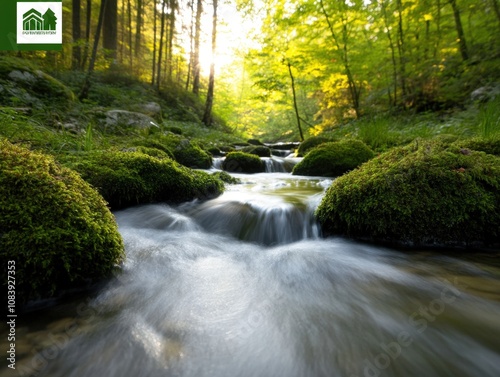 Fototapeta premium tranquil stream flowing through a lush green forest