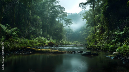 © Siasart Studio, Obraz premium Tranquil Stream Flowing Through Lush Rainforest