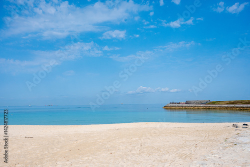 Fototapeta premium 夏の始まりを感じる海辺の風景/Tranquil Summer Beach with Calm Sea