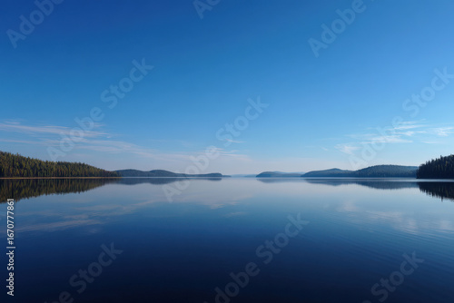 © Nino, Obraz premium tranquil summer landscape featuring calm lakes with mirrorlike surfaces across different countries