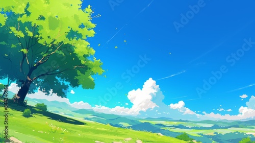 © Handz, Obraz premium Tranquil Summer Landscape with Rolling Hills