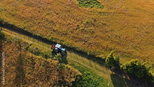 © astrosystem, Fototapeta premium Tranquil sunny summer landscape with green fields and hills.