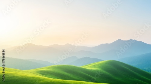 Fototapeta premium Tranquil Sunrise Over Rolling Green Hills in Indian Hill Station