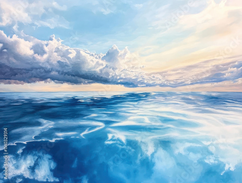 © Nakorn, Fototapeta premium Tranquil sunrise reflection over calm ocean waters serene beach digital art coastal environment aesthetic viewpoint