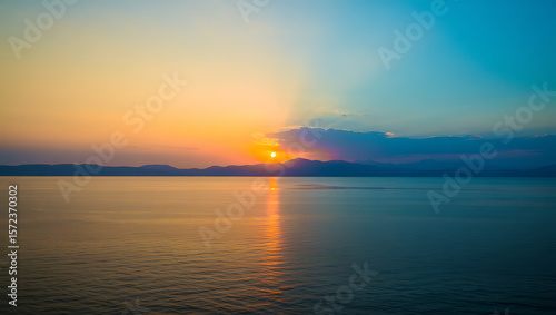 Naklejka premium Tranquil Sunset Over a Serene Ocean with Vibrant Colors