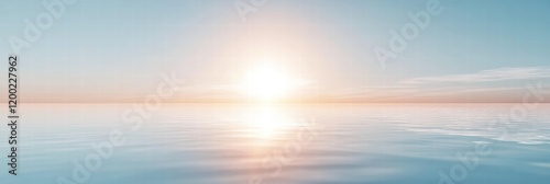 © Anat art, Obraz premium Tranquil sunset over calm ocean waters with gentle waves reflecting sunlight at twilight. Generative AI