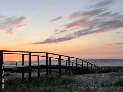 © Rui, Fototapeta premium Tranquil Sunset Over Ocean Boardwalk