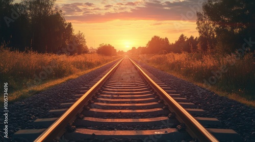 Fototapeta premium Tranquil Sunset Over Railroad Tracks