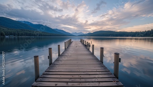 Fototapeta premium Tranquil sunset reflection lake pier photography nature serene beauty
