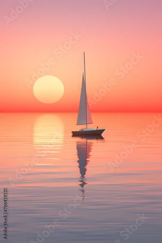 © Dustin, Fototapeta premium Tranquil Sunset Sail: Minimalist Serene Waters Illustration