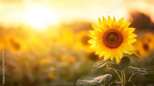 Fototapeta premium Tranquil Supermoon Over Sunflower Field - Golden Lunar Glow Illuminates...
