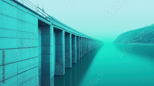 Fototapeta premium Tranquil Teal Bridge Over Still Waters